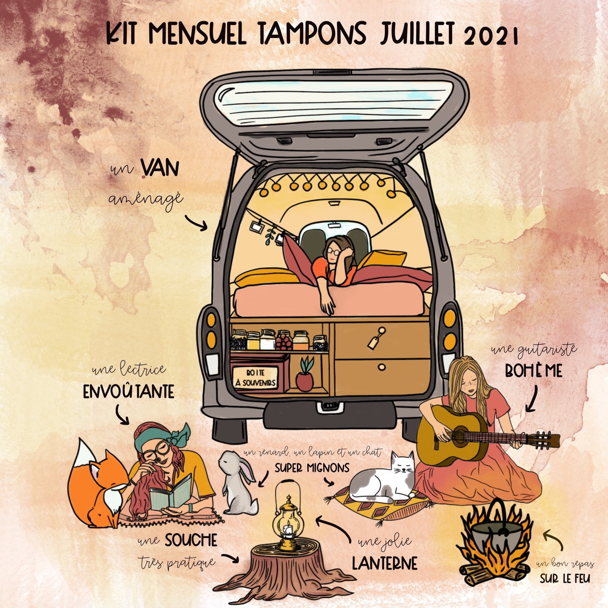 Planche de tampons de JUILLET 2021 – Voyage Bohème En caoutchouc vulcanisé de très haute qualité.